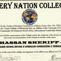 Reason for Certification: The certificate states that you, Hassan Sheriff, have "satisfied in full the requirements of the College and by the Authority of the Board of Governors, and on the recommendation of the Faculty".