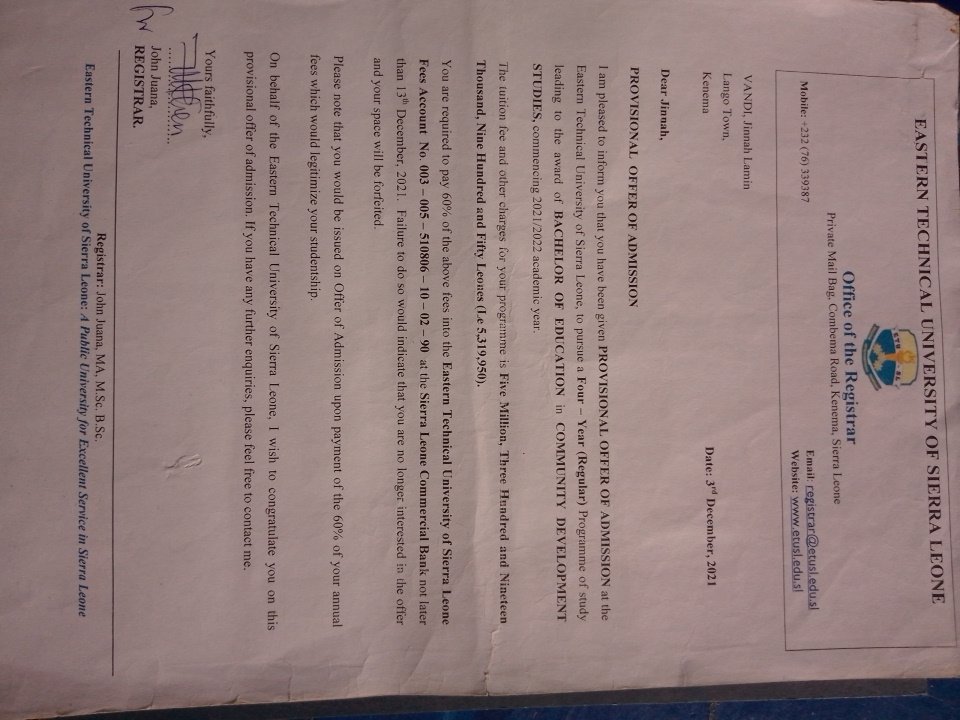 laminjinnahvandi Just Applied for PROGRAM ASSISTANT – EDUCATION ( BRAC Organization) July 10, 2003 Download CV Invite ShortlistAbout CandidateWell graded in my area of study.Share this post Facebook Twitter LinkedIn LocationEducation B Bachelors degree in Education - Community Development Studies 4 Eastern technical University of Sierra LeoneThe study was successfulPortfolio +1 Related Candidates boimaf24 Active Job Seeker Shortlist View Profile gassimdanielroy Active Job Seeker NLE1000 / month Shortlist View Profile laminkoroma753 Active Job Seeker NLE200 / month Shortlist View Profile Musa Koroma Active Job Seeker Shortlist View Profile