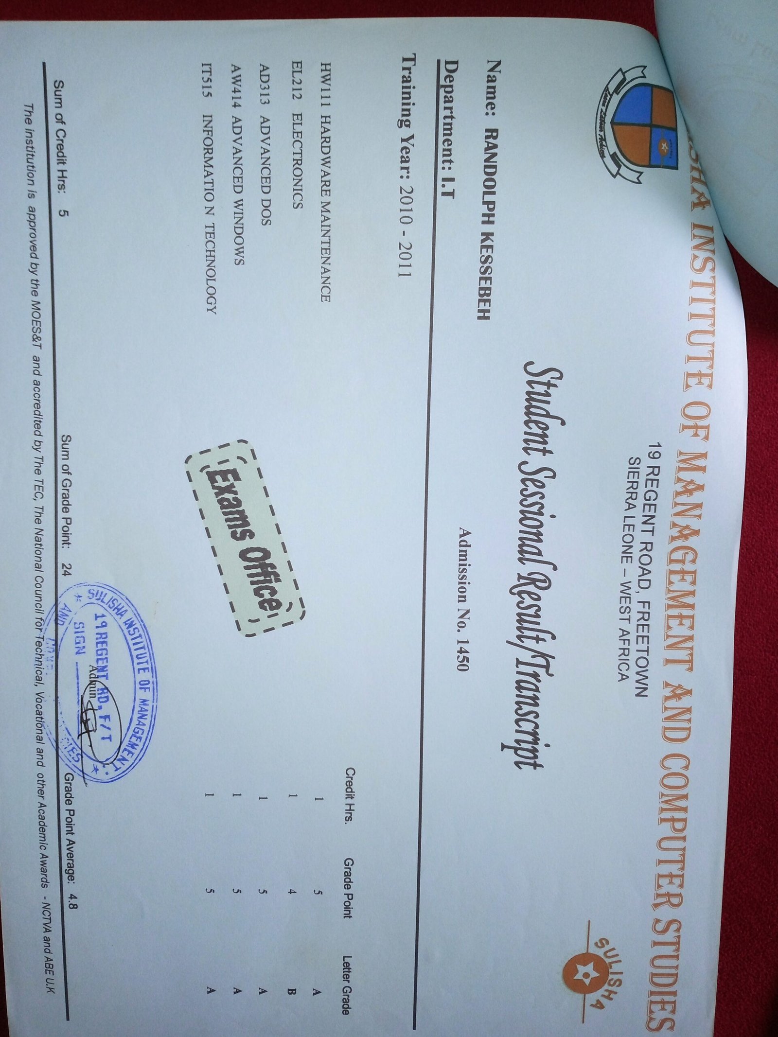 Sulisha Institute of Management and Technology. 19 Regent Road Freetown.
