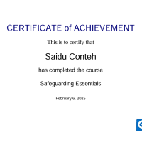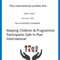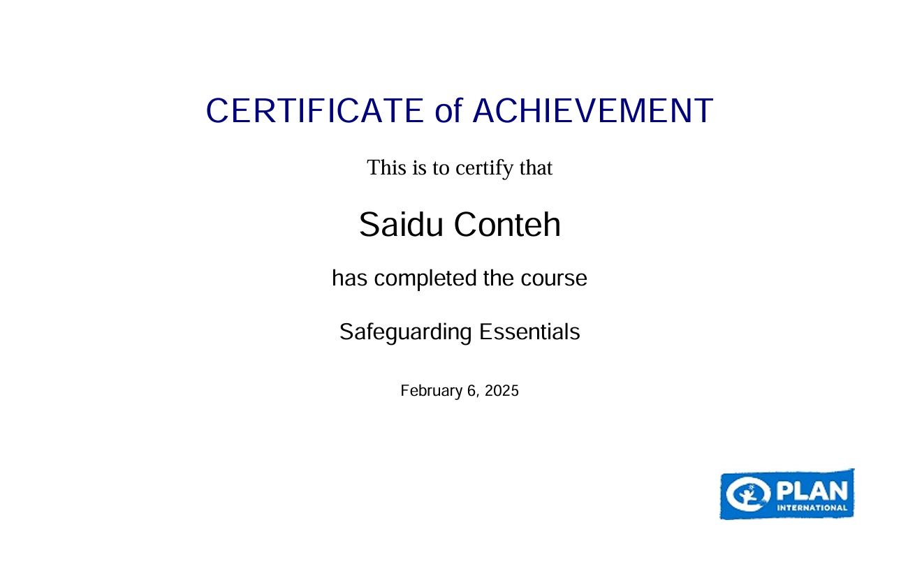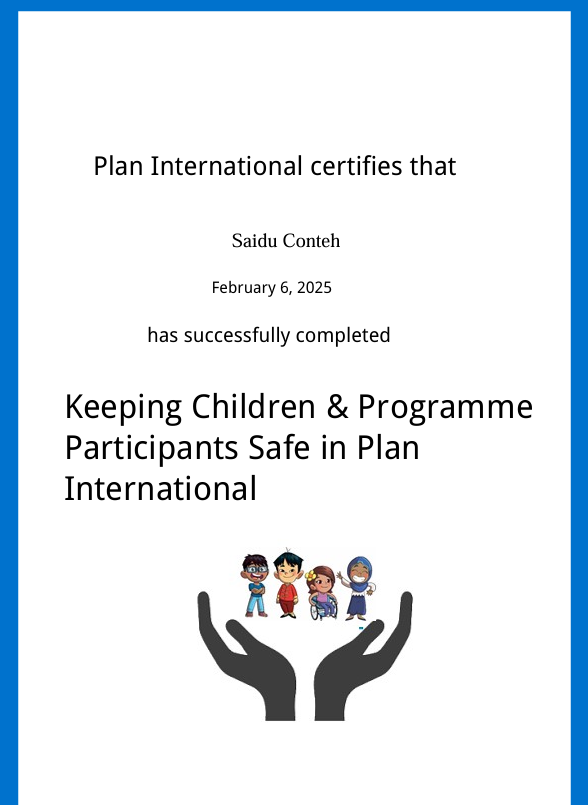 In addition, I have completed Safeguarding Essentials training, which provided an in-depth understanding of the core principles of safeguarding children and at-risk adults. It covered the identification of risks, appropriate reporting procedures, and best practices for creating safe environments in humanitarian and development programs. Complementing this is my certification in Keeping Children and Program Participants Safe, a practical course that focused on protecting children and participants from harm, neglect, abuse, and exploitation. It also highlighted the importance of safe program design, strict adherence to codes of conduct, and engaging communities in awareness initiatives.