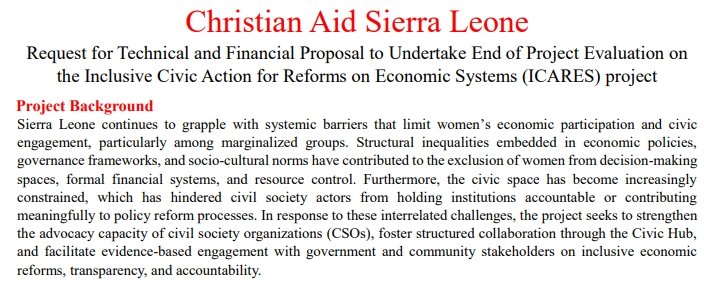 for Economic Systems (ICARES) two years project in Sierra Leone through Christian Aid